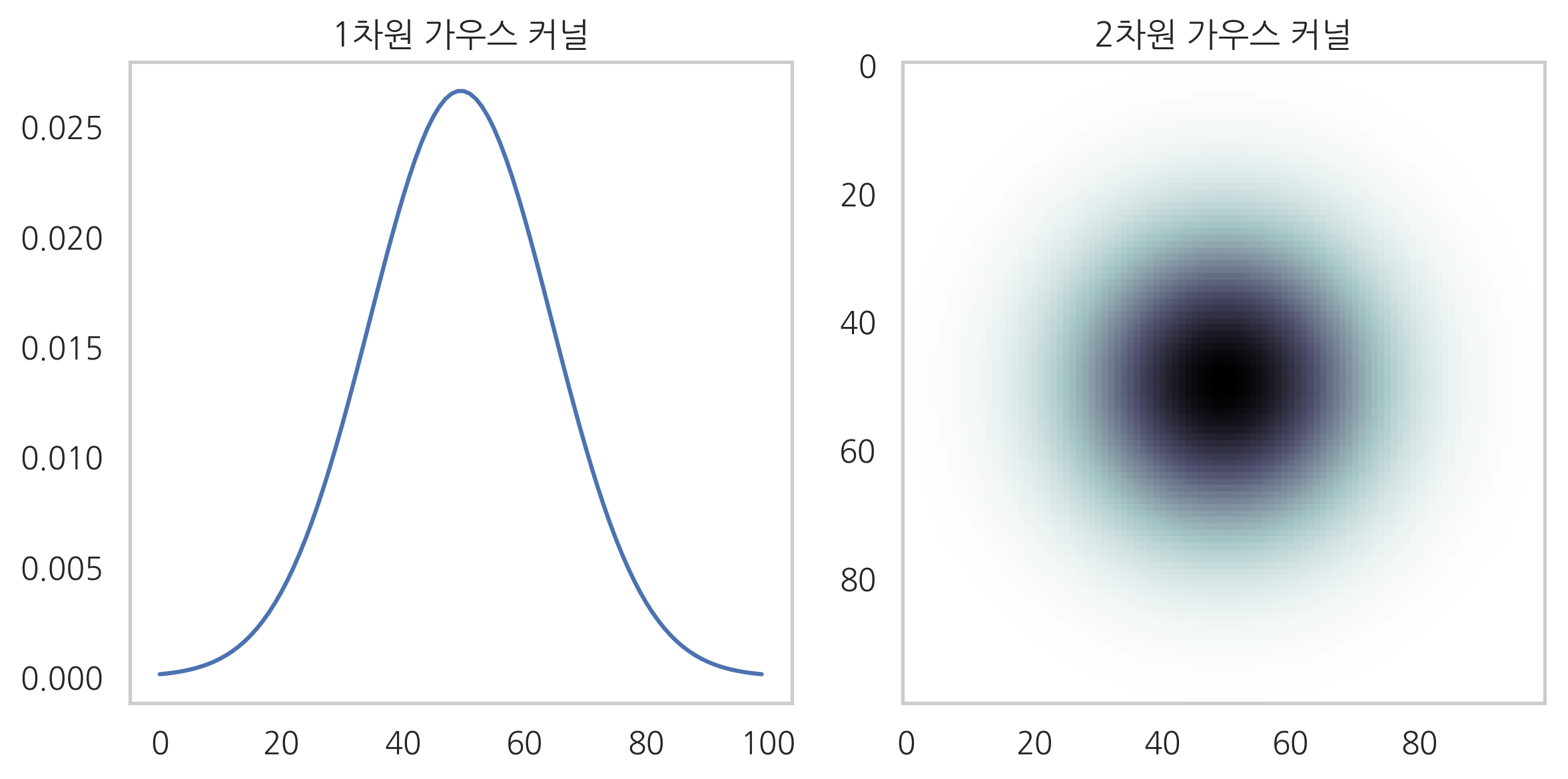 plt.title("2차원 가우스 커널")