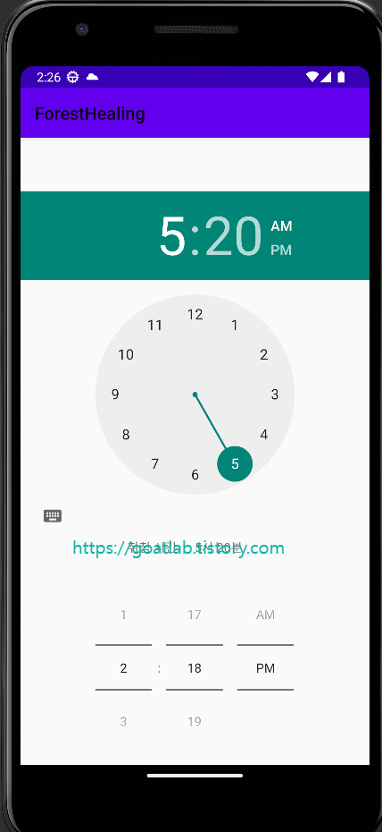 타임피커는 사용자가 시간을 선택하도록 하는 위젯이다. 타임피커는 clock과 spinner 모드가 있다.