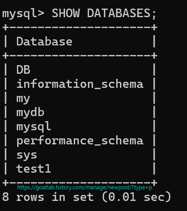 # 데이터베이스 목록 출력