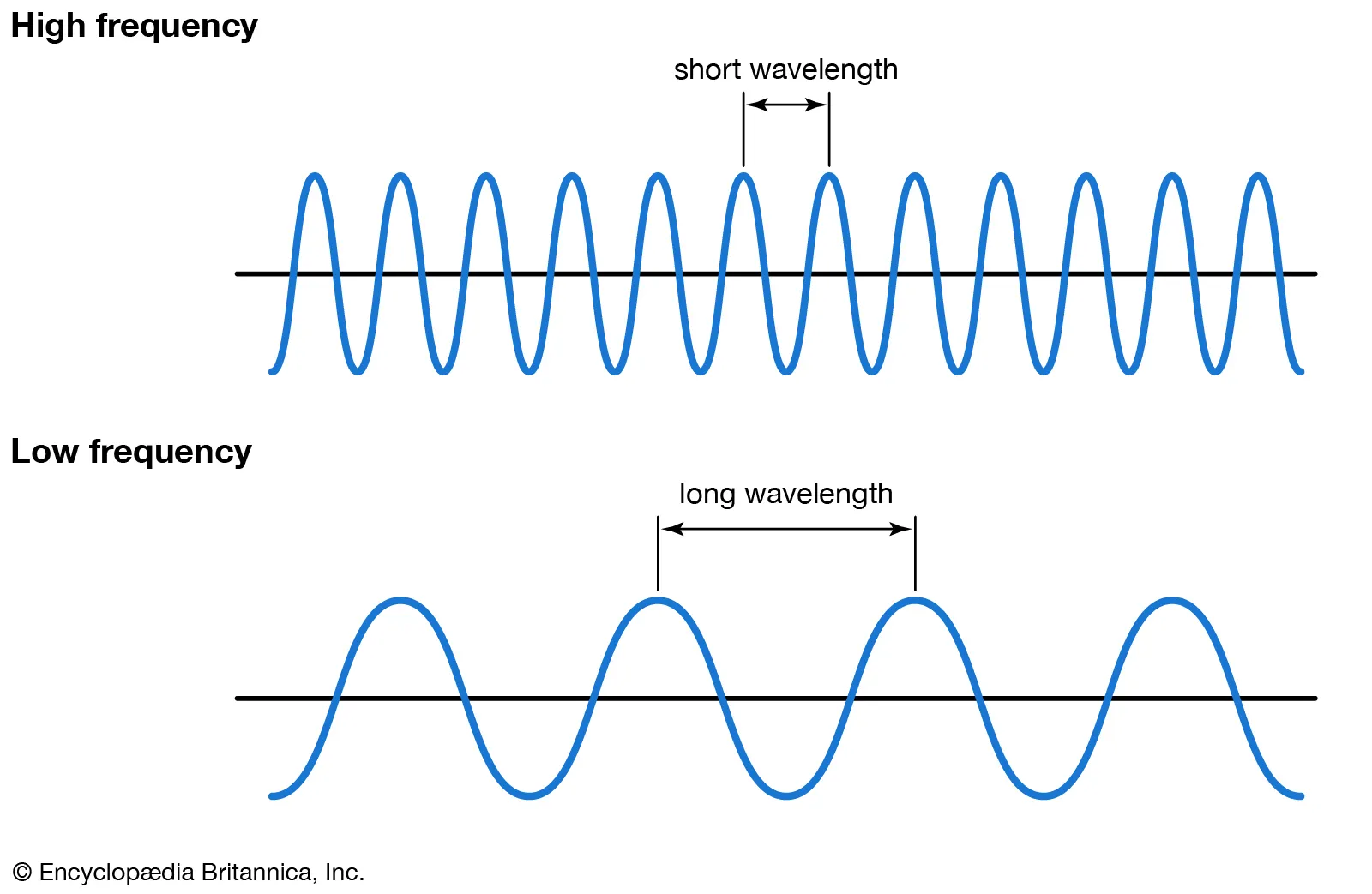 주파수는 파장 (wavelength)의 차이를 설명하며 고음과 저음이 존재한다.