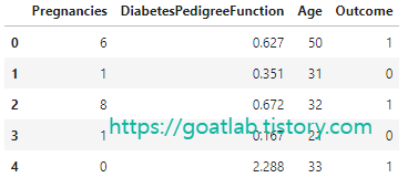 'BMI', 'DiabetesPedigreeFunction', 'Age', 'Outcome'],