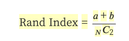 랜드지수 (Rand Index, RI)는 가능한 모든 데이터 쌍의 개수에 대해 정답인 데이터 쌍의 개수의 비율로 정의한다.