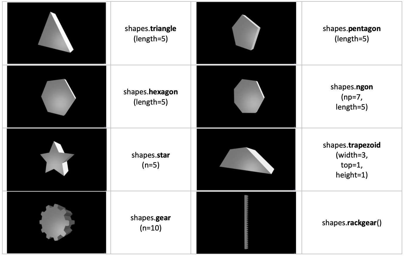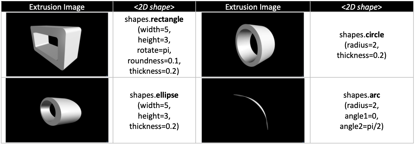 2D shapes은 3D shapes에서 shape=으로 사용된다.