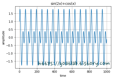 y = np.sin(2*x) + np.cos(x) # y = sin(2x) + cos(x)