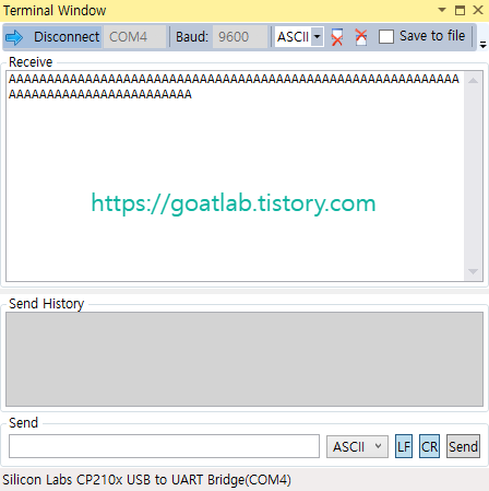1. 0100 1010이라는 데이터를 전송하기 위해 UDR0에 써주면 이 데이터는 시프트 레지스터로 전달된다. 2. 전달된 데이터는 설정된 전송 속도에 따라 1비트씩 전송된다. 3. 데이터 전송 중에 UDR0에 새로운 데이터를 써주더라도 시프트 레지스터에서 아직 데이터가 전송중이라면 잠시 대기한다. 4. 시프트 레지스터에 있던 데이터가 전송 완료되고 비어있으면 UDR0에서 대기하던 데이터가 시프트 레지스터로 전달되고 새로운 전송을 시작한다. |