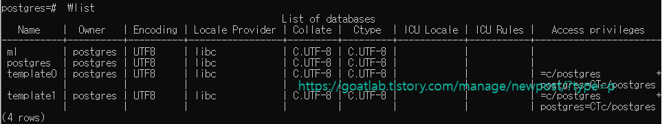 다음 명령어로 ml 데이터베이스에 연결한다.
