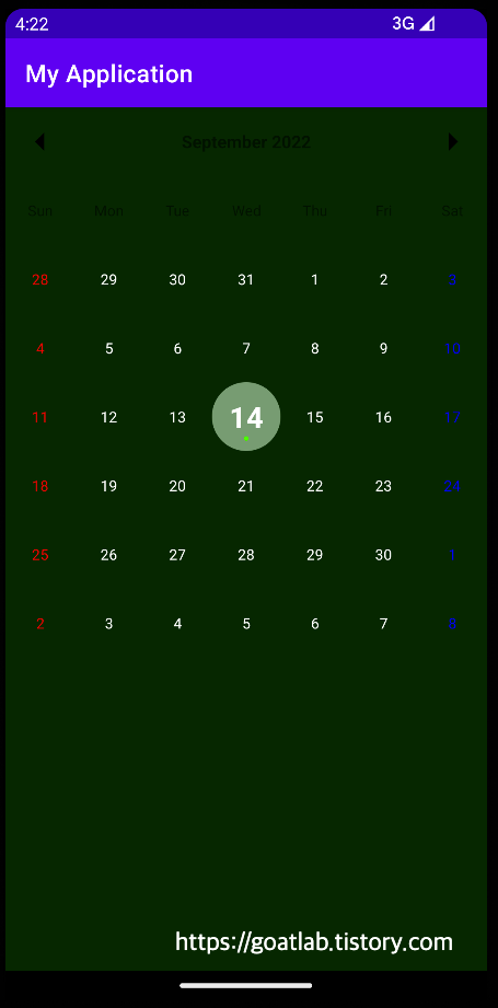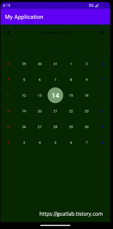 | [Android Studio] Material CalendarView (1) (0) | 2022.09.13 |