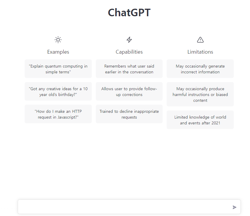 대화를 위한 언어 최적화 모델이다. 대화 방식으로 상호 작용하는 ChatGPT라는 모델을 훈련했다. 대화 형식을 통해 ChatGPT는 후속 질문에 답하고, 실수를 인정하고, 잘못된 전제에 이의를 제기하고, 부적절한 요청을 거부할 수 있다. ChatGPT는 프롬프트의 지시를 따르고 자세한 응답을 제공하도록 훈련된 InstructGPT의 형제 모델이다 .