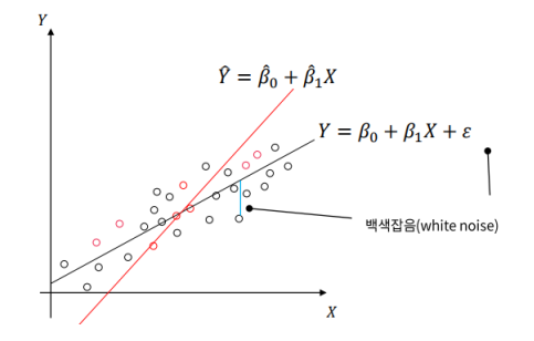 • 실제 𝛽0, 𝛽1는 구할 수 없는 계수로 데이터를 통해 이 둘을 추정하여 구한다.