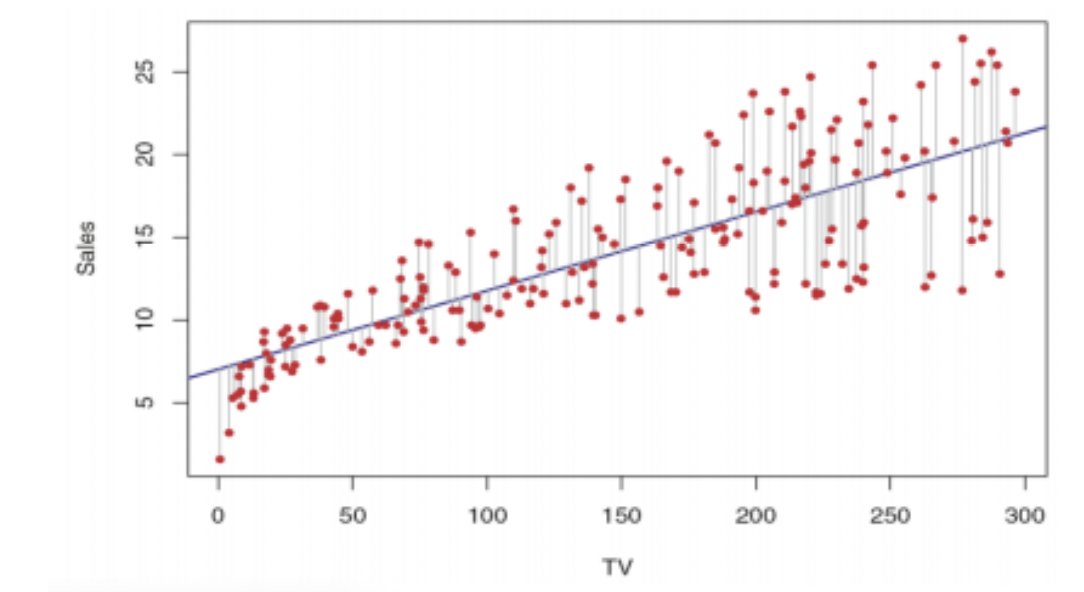 • 실제 값과 추정한 값의 차이를 잔차 (residual)라고 하며 이를 최소화 하는 방향으로 추정을 진행한다.