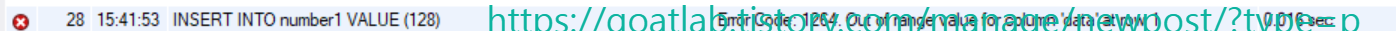 지정된 데이터 타입이 표현할수 있는 숫자의 범위를 벗어났기 때문에 데이터가 입력되지 않는다.