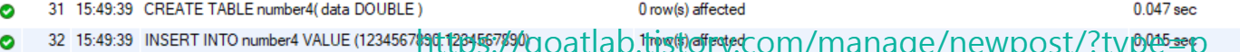 | DOUBLE (8byte) | 정수부와 실수부를 합쳐 17자리의 숫자를 입력할 수 있음 |