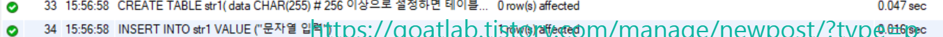 data CHAR(255) # 256 이상으로 설정하면 테이블이 생성되지 않음