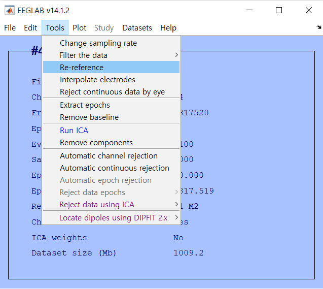 2. Tools > Re-reference 를 선택한다.