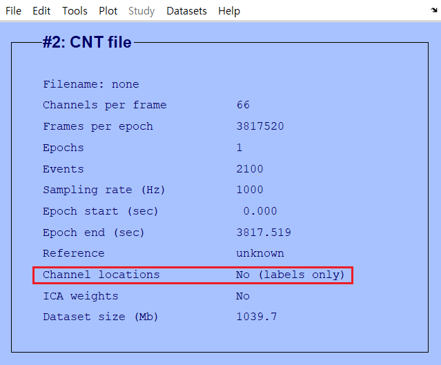 ICA를 돌리기 위해서는 채널 로케이션 정보를 먼저 입력해주어야 한다. 지금 예제에 사용된 64chan.ced 파일은 뉴로스캔 홈페이지에서 제공된다. 이것을 입력한다.