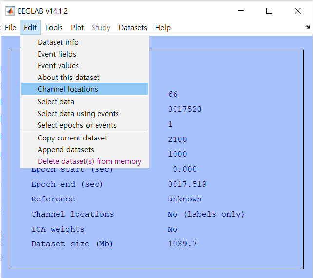 2. Edit > Channel locations를 선택한다.
