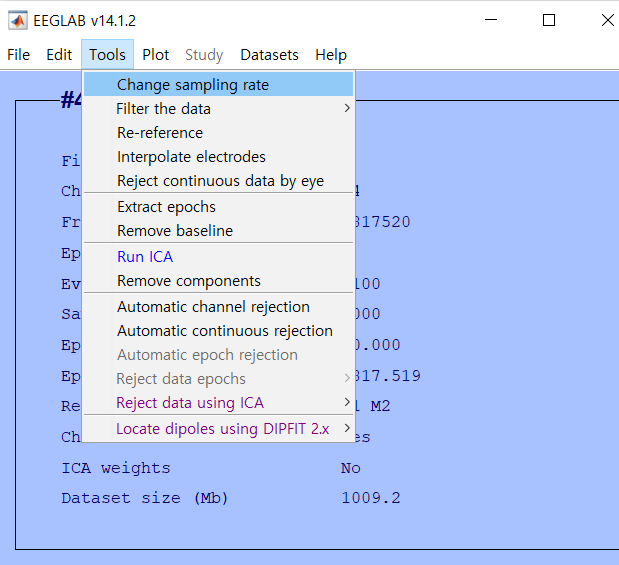 1. 데이터는 1000 Hz의 sampling rate를 가지고 있지만, 실제 데이터 분석에서는 아직 250Hz나 500Hz가 많이 사용되고 있기 때문에 Downsampling을 진행한다. 또한, ICA를 돌릴 때도 Sampling rate가 속도에 영향을 줄 수 있다.