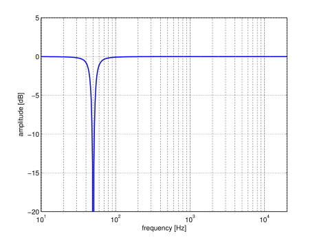 전기 생리학적 신호는 종종 기록 회로와 전기적으로 또는 자기적으로 결합된 전력선 노이즈 (50 또는 60Hz 및 고조파)로 인해 어려움을 겪는다. 이러한 소음은 신중한 장비 설계 및 차폐를 통해 근원에서 가장 잘 제거되지만 이것이 항상 성공적인 것은 아니며 이미 수집된 데이터에 적용할 수 있는 것도 아니다. 노치 필터링은 종종 이러한 전력선 노이즈를 완화하는 데 사용된다. 필요한 경우 고조파에 추가 노치를 배치할 수 있다.