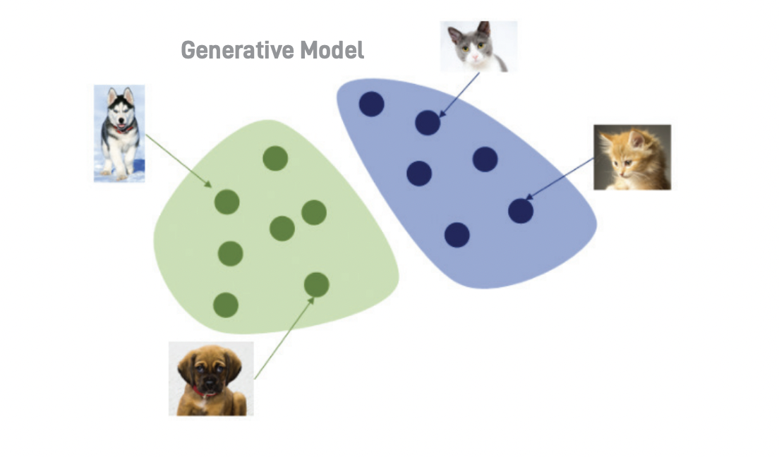 생성 모델 (Generative Model)이란 새로운 data instance를 생성하는 모델이다. 즉, 학습 데이터의 분포도를 근사하는 특성을 가지고 있다. 예를 들어, 고양이, 강아지의 이미지 데이터를 생성 모델의 입력으로 준다면 입력 데이터와 상당히 유사한 분포를 갖는 새로운 이미지를 얻게 된다.