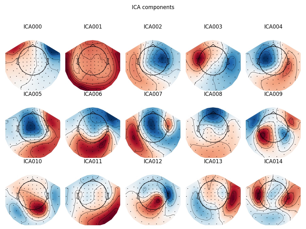 EEG / MEG 분석에 어떻게 적용되는지 이해하는 것은 어렵지 않다. 많은 "마이크" (센서 채널)가 동시에 많은 "악기" (깜빡임, 심장 박동, 뇌의 여러 영역에서의 활동, 턱을 악물음으로 인한 근육 활동)를 녹음한다 (또는 삼키기 등). 이러한 다양한 소스 신호가 통계적으로 독립적이고 비정규적이면 일반적으로 ICA를 사용하여 소스를 분리한 다음 원하지 않는 소스를 제외하고 센서 신호를 재구성하는 것이 가능하다.