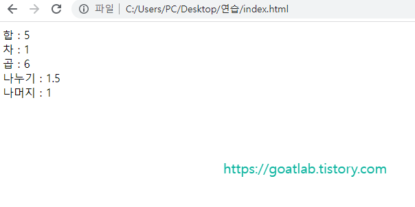 document.write("곱 : " + result + lineBreak)