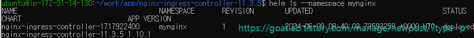 helm install --namespace mynginx --generate-name bitnami/nginx-ingress-controller -f my-values.yaml