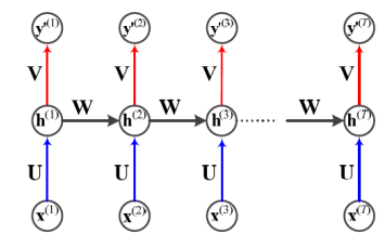 순환 신경망의 매개변수 (가중치 집합)는 Θ = 𝐔𝐔,𝐖𝐖, 𝐕𝐕, 𝐛𝐛, 𝐜𝐜 이다.