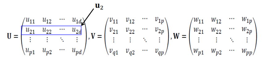 | 𝐮𝐮𝑗𝑗 = 𝑢𝑢𝑗𝑗1, 𝑢𝑢𝑗𝑗2, ⋯ , 𝑢𝑢𝑗𝑗𝑑𝑑 는 𝐔𝐔 행렬의 j번째 행 (ℎ𝑗𝑗에 연결된 에지의 가중치들) |