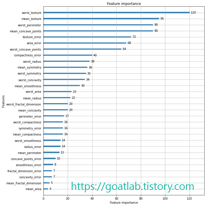 | Num_iterations | 100 | 반복 수행하려는 트리의 개수를 지정 |