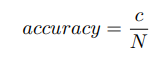 여기서 c는 정답 수이고 N은 평가된 집합 (학습 또는 검증)의 크기이다. 정확도가 높을수록 좋다. 기본적으로 Keras는 각 클래스에 대한 백분율 확률을 반환한다. 이러한 예측 확률을 argmax로 예측한 실제 홍채로 변경할 수 있다.