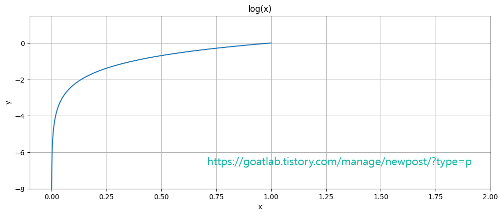두 항이 더하기(+)로 구분되어 있는 것을 볼 수 있다. 각각 로그 함수가 포함되어 있다. y는 0 또는 1이 될 것이므로 이 두 항 중 하나는 0으로 상쇄된다. y가 0이면 첫 번째 항이 0으로 줄어들고, y가 1이면 두 번째 항이 0이 된다.
