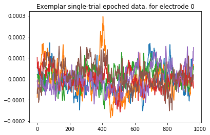 plt.title("Exemplar single-trial epoched data, for electrode 0")