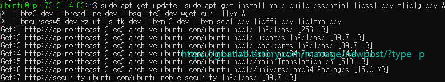 libncursesw5-dev xz-utils tk-dev libxml2-dev libxmlsec1-dev libffi-dev liblzma-dev