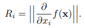 SA는 각 입력변수 i (ex: 이미지 픽셀)의 중요도를 다음과 같이 편미분의 norm으로 계산한다.
