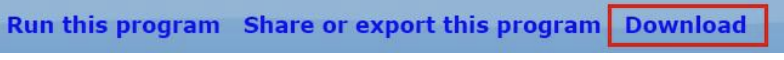 컴퓨터나 클라우드에 있는 프로그램을 백업하기 위해서는, 프로그램 페이지를 편집하기 위해 가서 다운로드 버튼을 클릭하면, python 파일(.py)이 다운로드 될 것이다. 이것은 파일을 안전하게 저장한다.