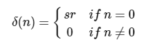 즉, 진폭이 무한대이고 폭이 0이고 표면적이 1인 스파이크이다. 이것은 물론 디지털 세계에서 사용할 수 없으므로 다음과 같이 표현된다.