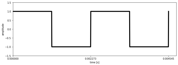 이를 설명하기 위해 듀티 사이클이 50%인 440Hz에서 구형파 신호를 분해하면, 신호의 정확히 절반이 양수이고 절반이 음수인 경우 초당 +1에서 -1까지 440번 진동하는 주기적 신호이다.