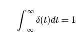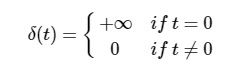 즉, 진폭이 무한대이고 폭이 0이고 표면적이 1인 스파이크이다. 이것은 물론 디지털 세계에서 사용할 수 없으므로 다음과 같이 표현된다.