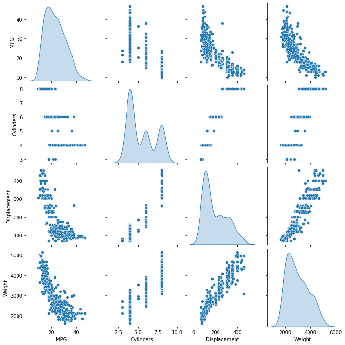 column_names = ['MPG','Cylinders','Displacement','Horsepower','Weight',