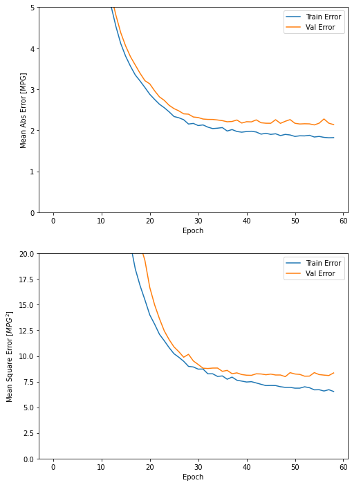 그래프를 보면 검증 세트의 평균 오차가 약 +/- 2 MPG입니다.