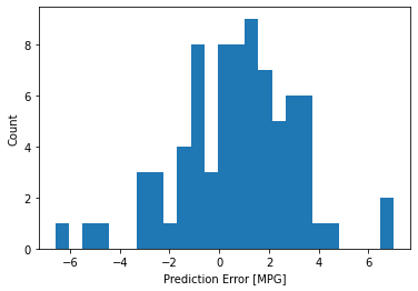 print("테스트 세트의 평균 절대 오차: {:5.2f} MPG".format(mae))