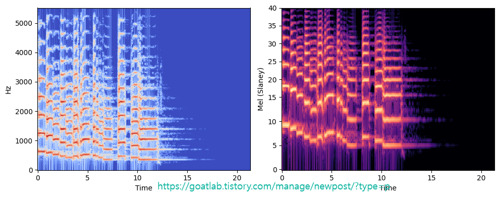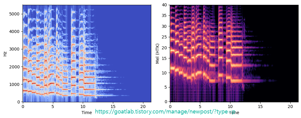 specs = (li.amplitude_to_db(sp) for sp in (spec, mel_spec))