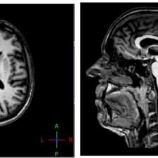 MRI 이미지의 값은 해당 위치의 이미지 강도를 나타낸다. sMRI의 경우 이 값은 해당 위치의 뇌 물 밀도를 효과적으로 나타냅니다. 이러한 값을 회색조에 색으로 표시하면 뇌의 구조를 볼 수 있다. 예를 들어, 다음은 뇌를 가로지르는 단면이다.