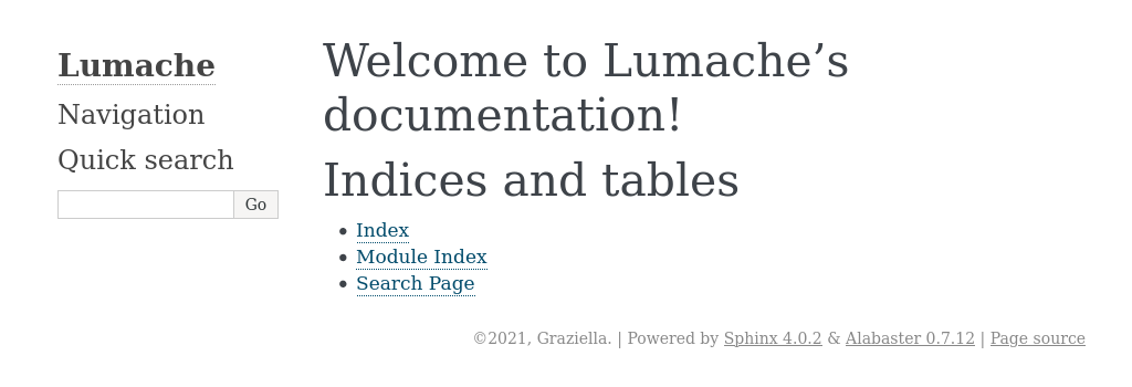 마지막으로 docs/build/html/index.html 브라우저에서 연다. 다음과 같이 표시되어야 한다.